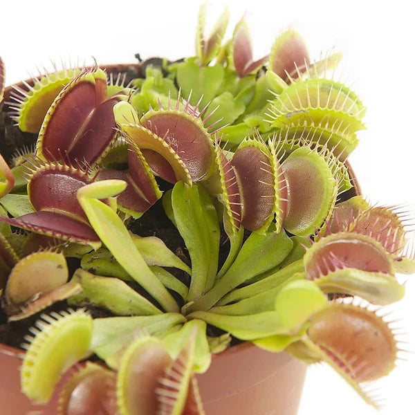 The Venus Flytrap (Dionea Miscupula) catches small insects such as mosquitoes and flies by closing its leaves on them. As soon as they feel the insect land on their leaves, they will close them up.